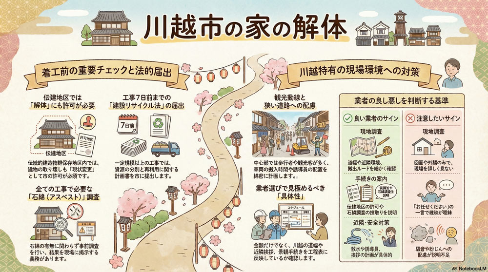 草加市で「家を解体しよう」と思ったとき、他の地域と比べて意識したいのは 住宅地の密集度 と 行政手続き(届出)の守備範囲 です。 隣家との距離が近い現場ほど、工程・安全・近隣対応の出来が、費用とトラブルの有無を左右します […]